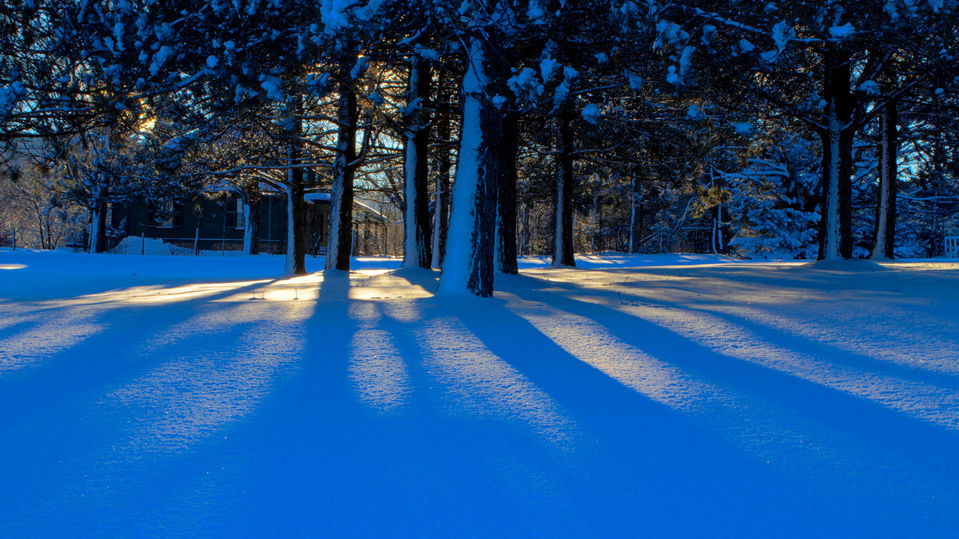 美丽冬天树与日落天空风景免费电脑壁纸下载