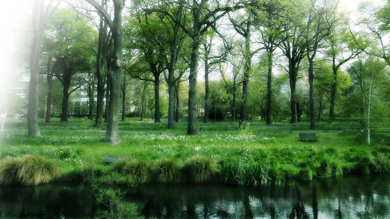 阳光透过树林2K自然风景免费电脑壁纸下载