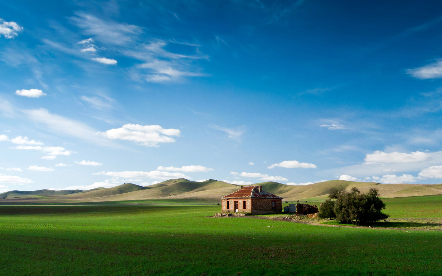 山谷绿色森林住宅光影风景免费电脑壁纸下载