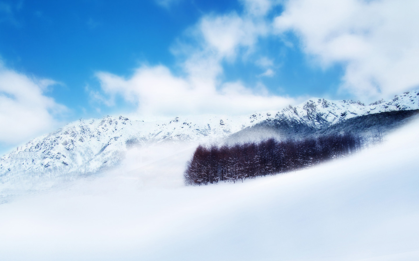 冬天雪山小镇灯光璀璨 最新免费电脑风景壁纸下载