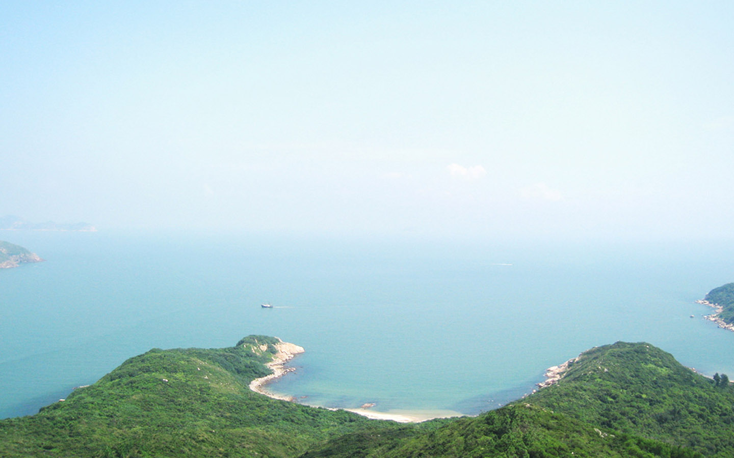 蓝色大海海湾海滩棕榈树风景桌面壁纸免费下载