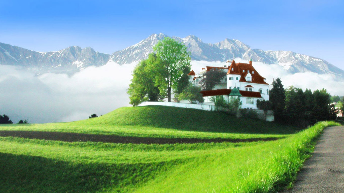 阿尔卑斯山自然风景高清桌面壁纸免费下载-含湖森林草地木屋