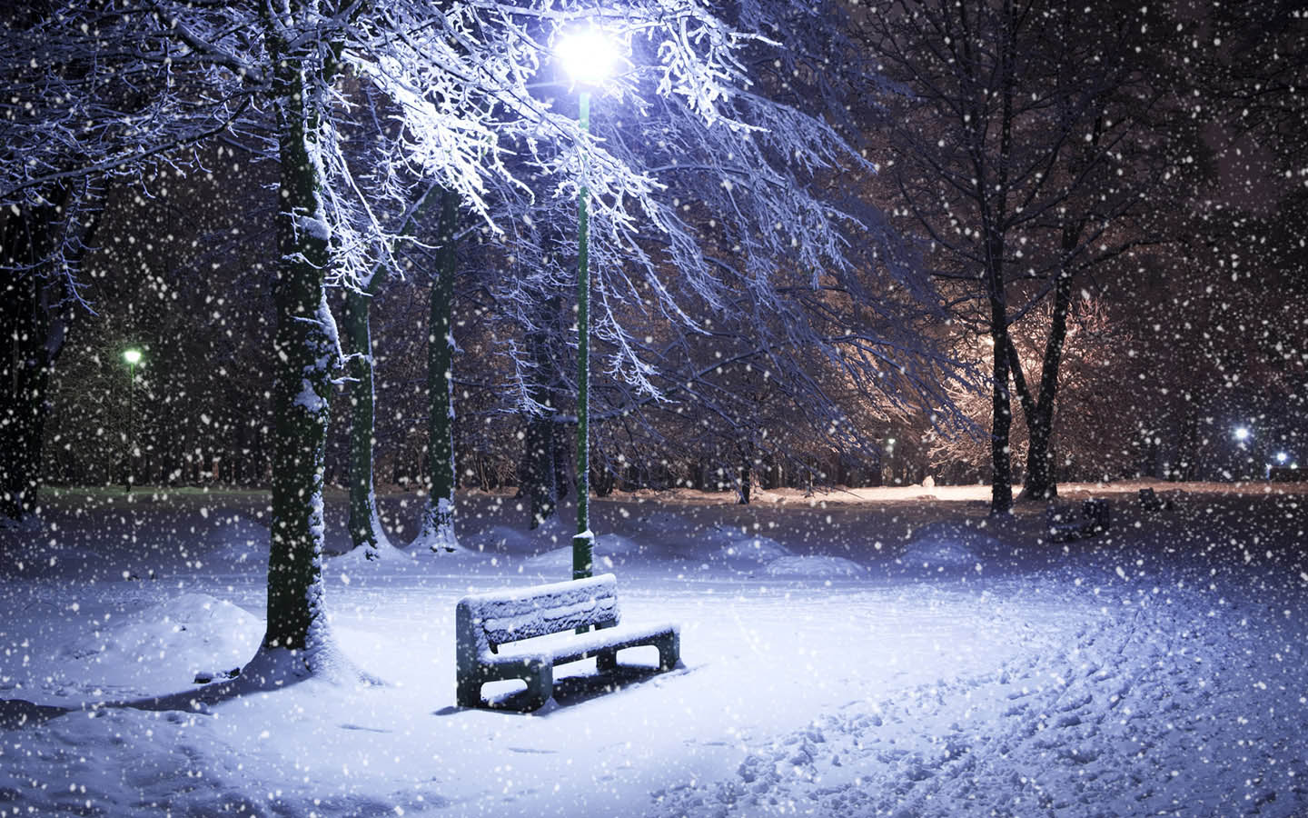 冬天圣诞新年下雪夜金碧辉煌风景免费电脑桌面壁纸下载