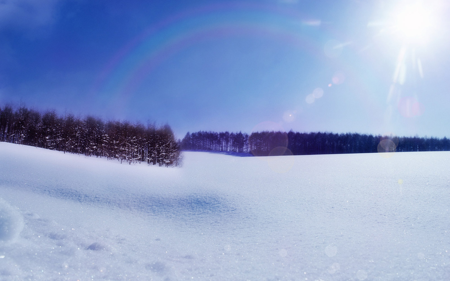 冬天树映冰景 白茫茫雪地电脑壁纸免费下载