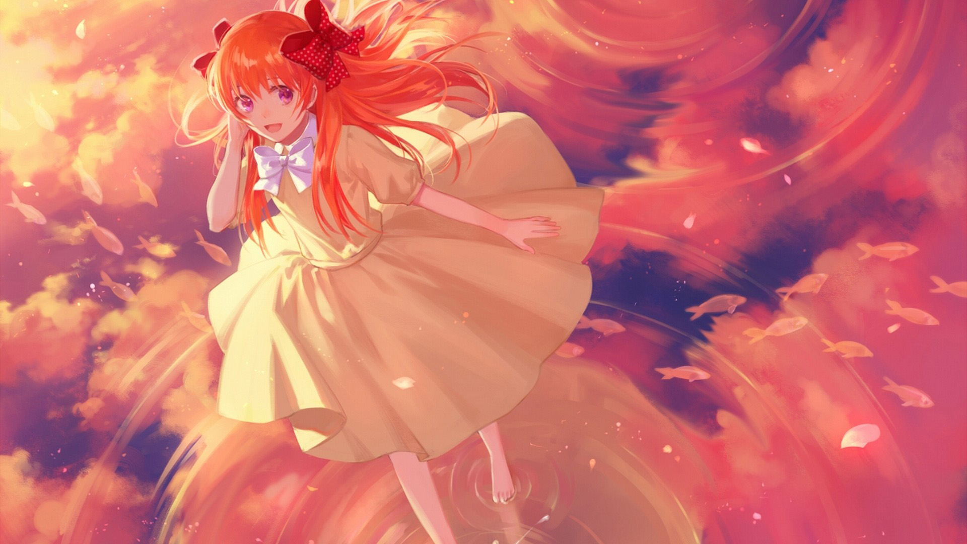 动漫女孩坐拥鲜花愿望祈祷精美免费电脑桌面壁纸下载