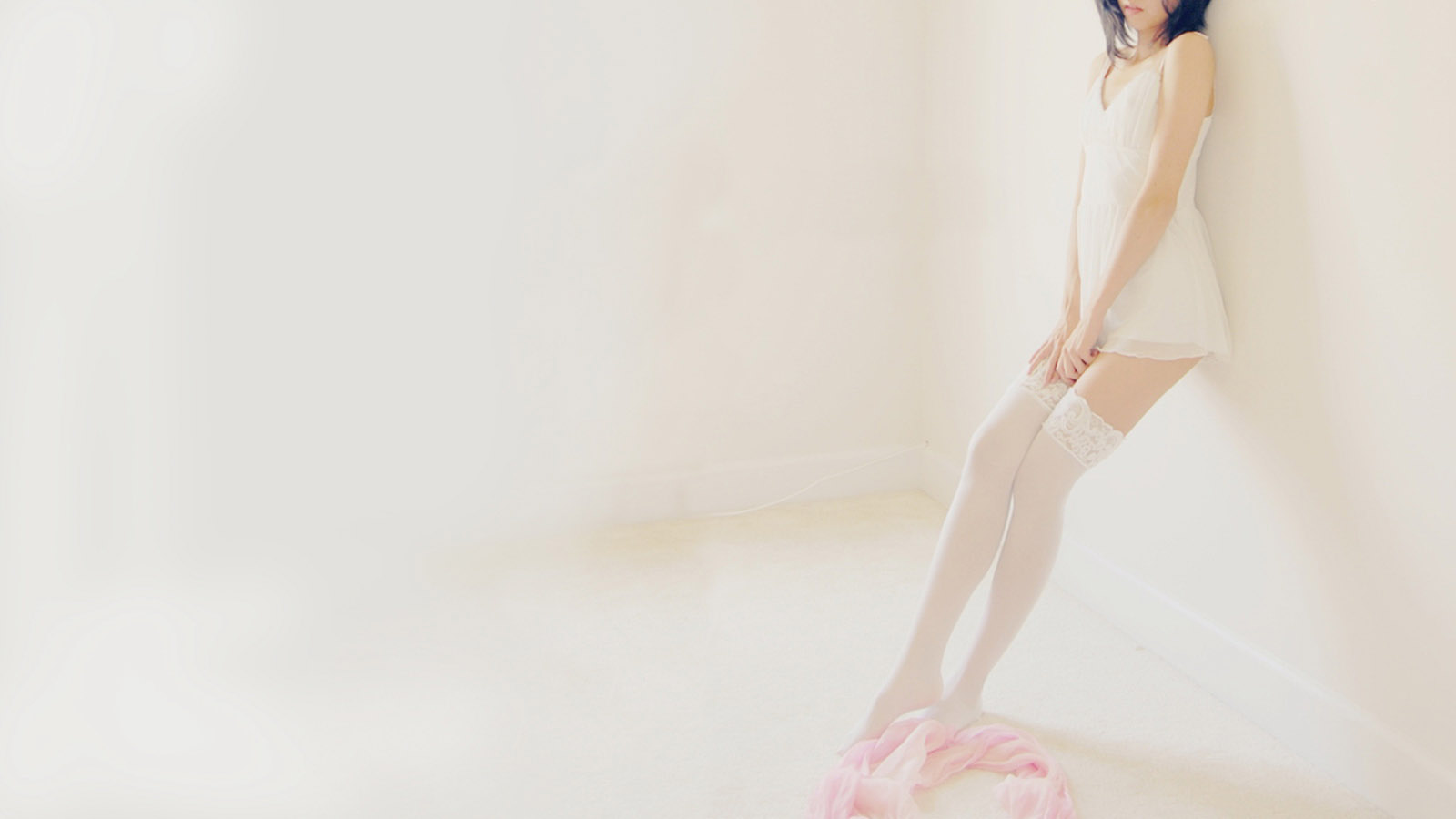 森林小湖旁白色裙子美女非主流免费电脑壁纸下载