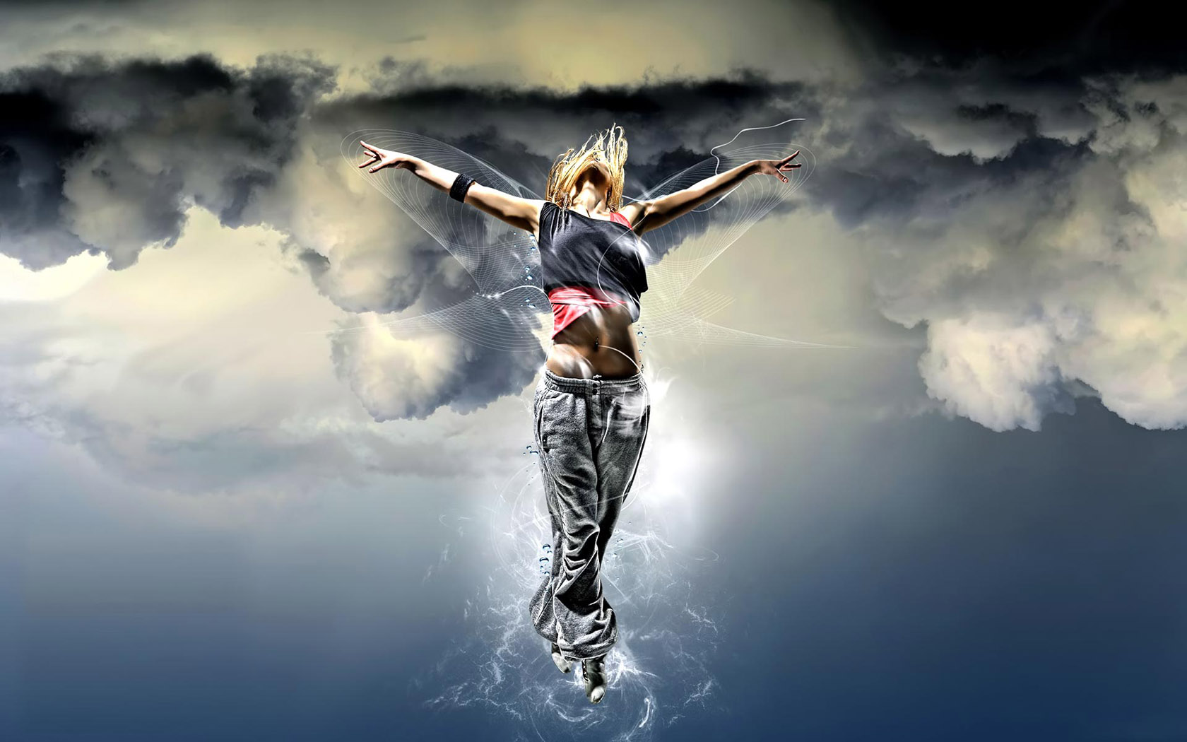 女孩天空荡秋千遐想配音乐 非主流免费电脑壁纸下载