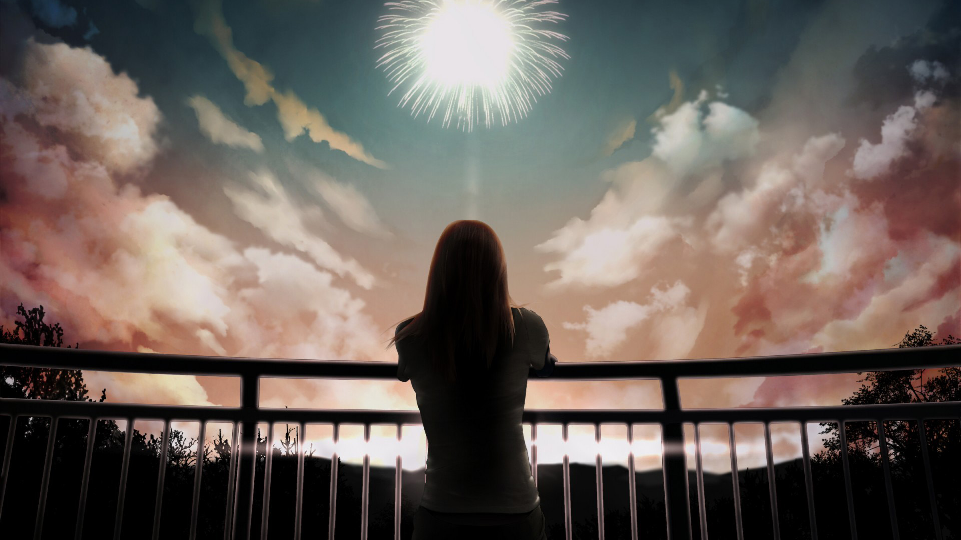 女孩归来烟花映天空 心情主题非主流免费电脑壁纸下载