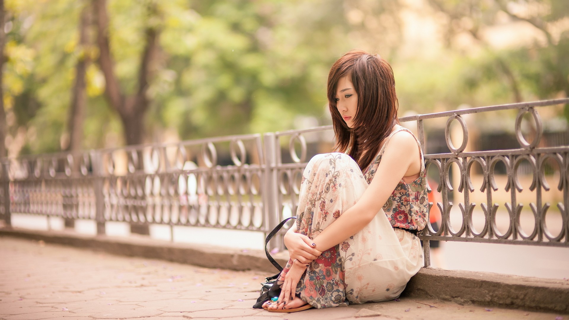 心情愉悦女孩精致打扮与彩色雨伞非主流免费电脑桌面壁纸下载