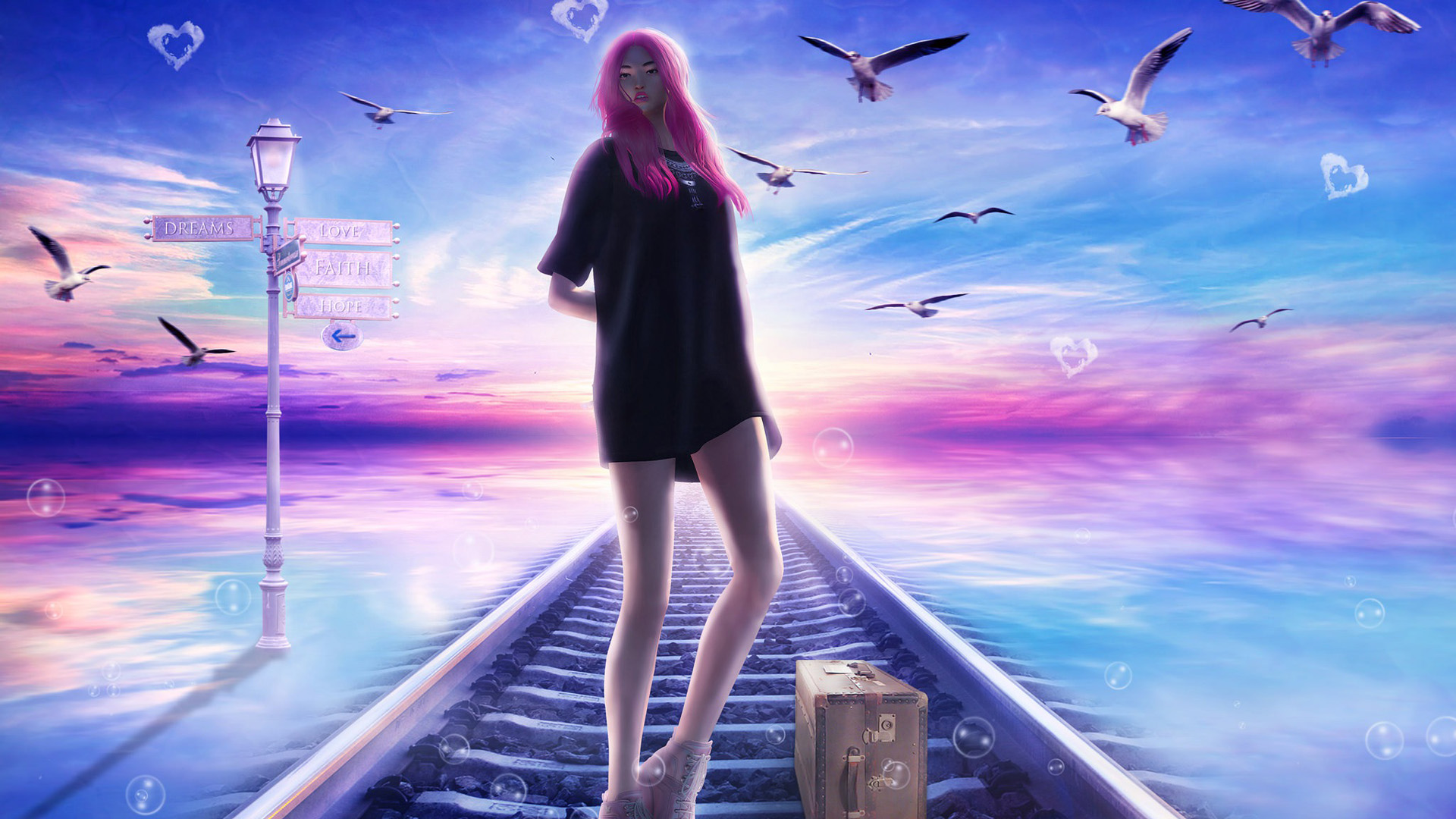 美少女与汽车动漫人物风景免费电脑壁纸下载
