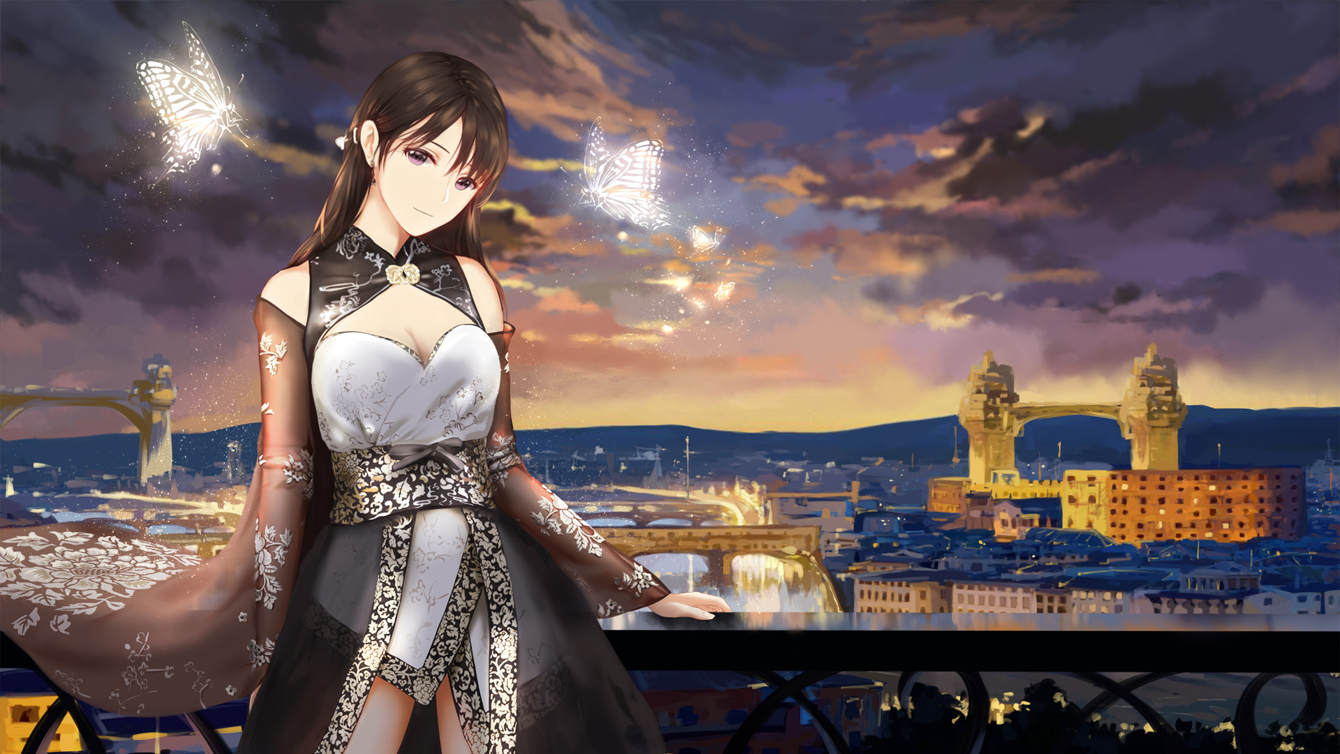 城市街道动漫女孩 摩托车 赛博朋克风电脑壁纸