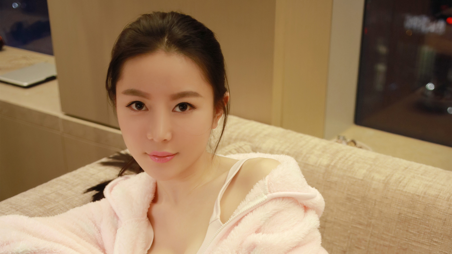 王曼妮床上性感小睡衣美女免费电脑壁纸下载