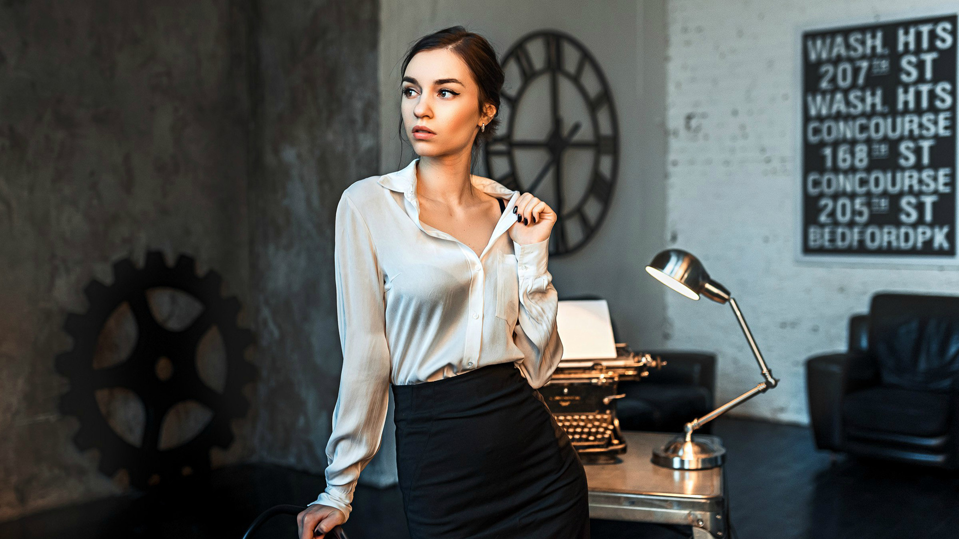 室内黑色裙子美女唯美摄影免费电脑壁纸下载