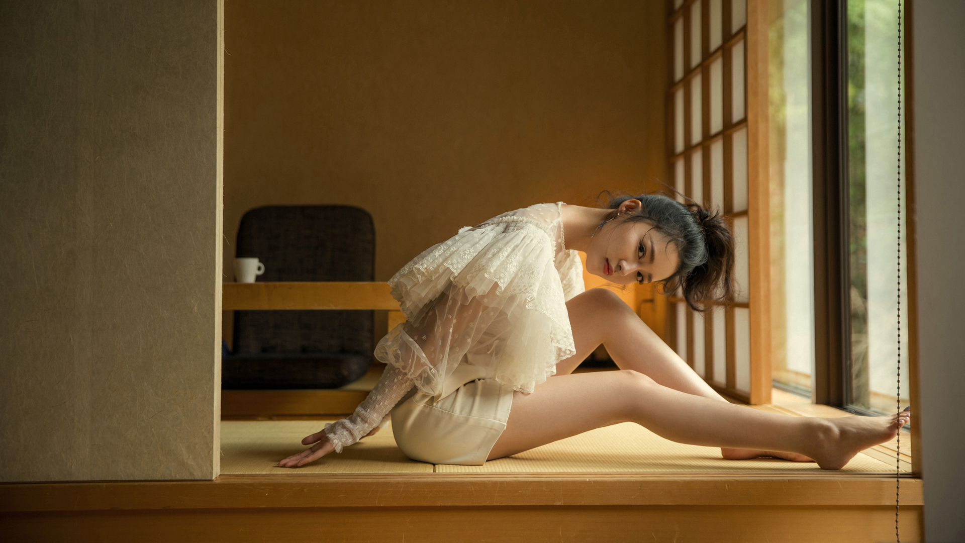 居家养眼美女白色手套主题免费电脑壁纸下载