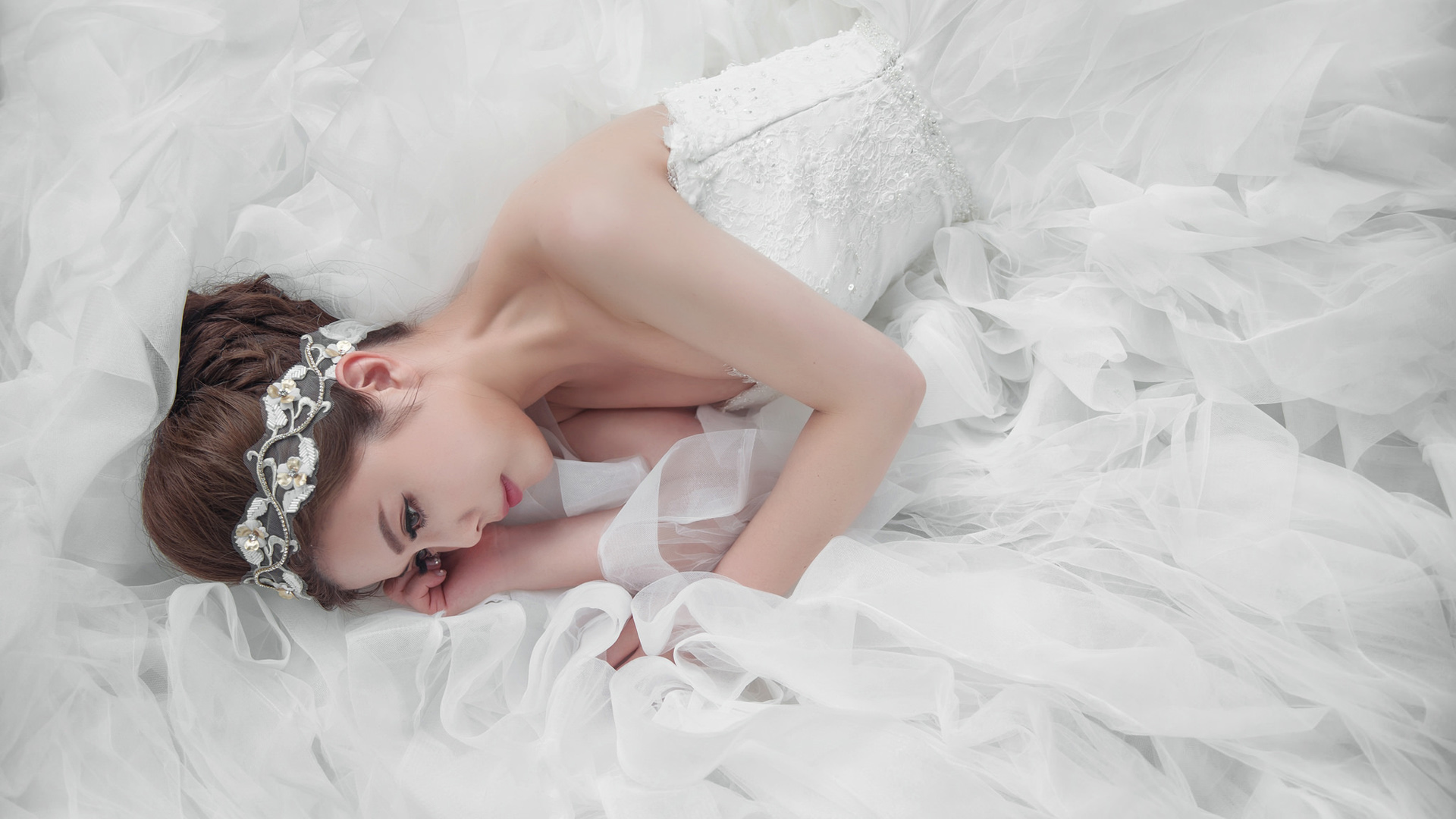 白色羽毛小姐姐甜美Cosplay美女免费电脑壁纸下载