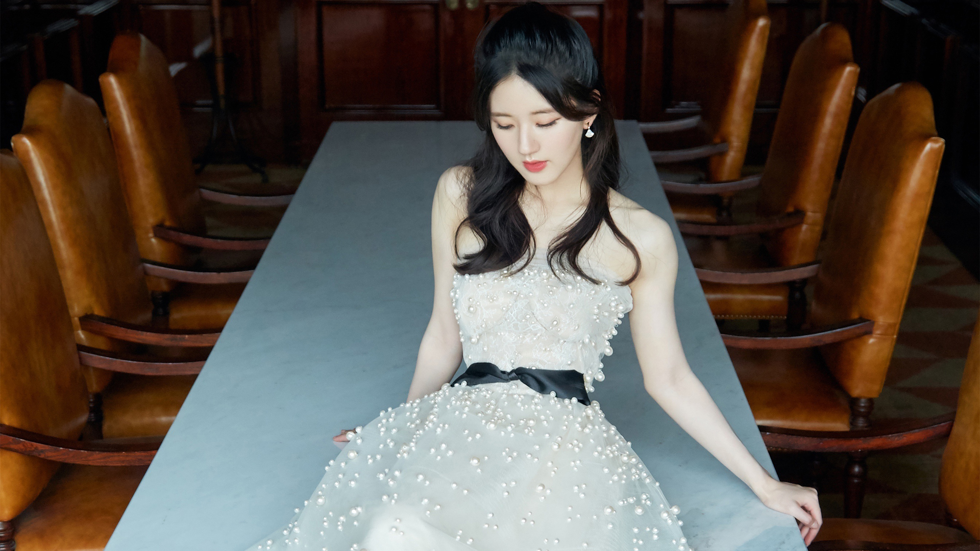 章若楠衬衫长发造型美女免费电脑壁纸下载