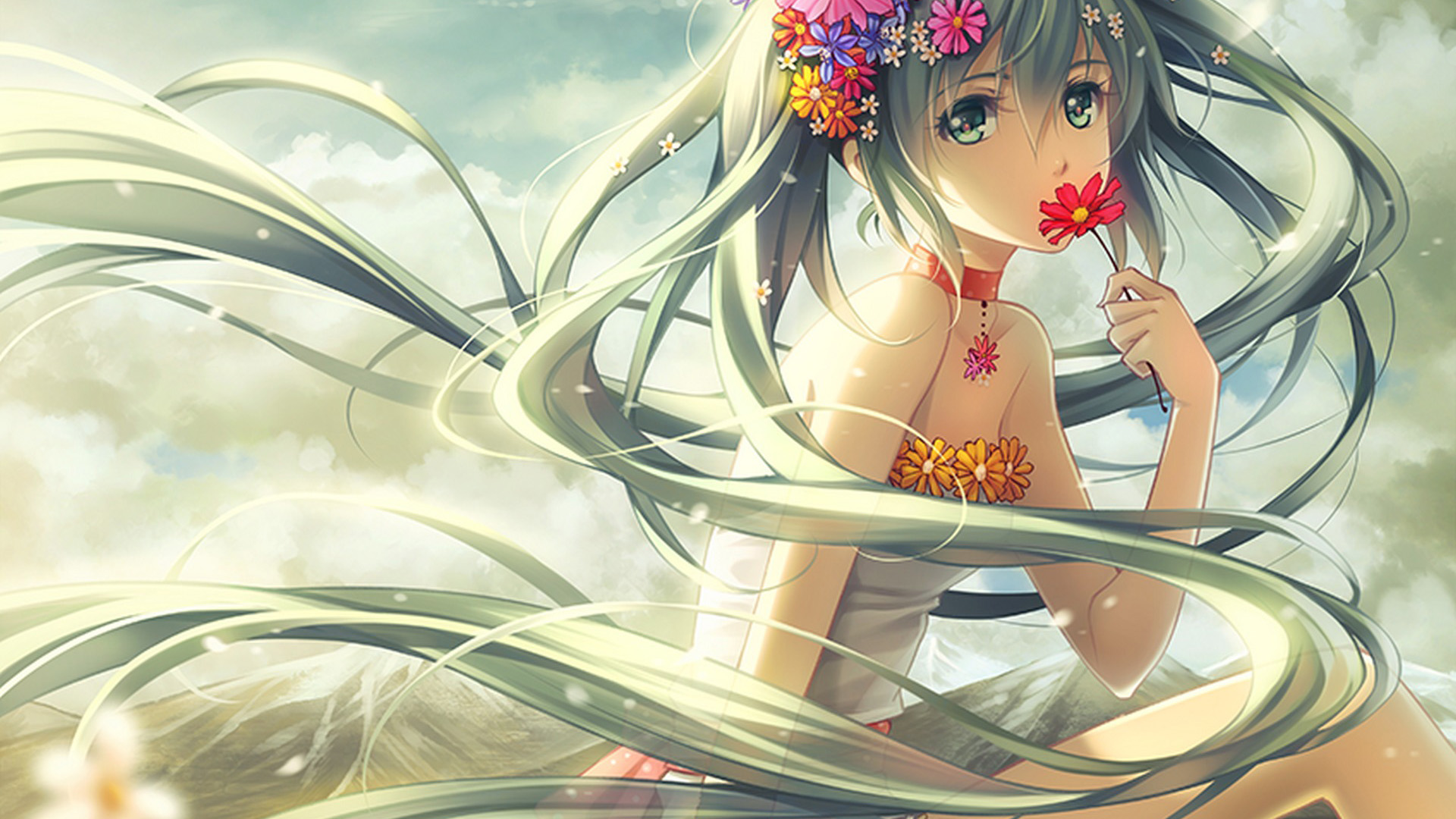 女孩眼泪与花唯美动漫2K电脑壁纸免费下载