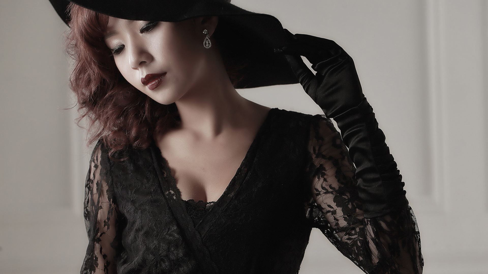 女孩黑帽长发及腰搭配树枝树藤唯美桌面壁纸免费下载