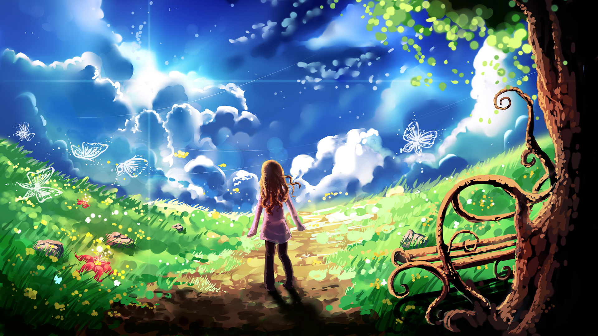 树下草地两个可爱女生朋友动漫免费电脑桌面壁纸下载