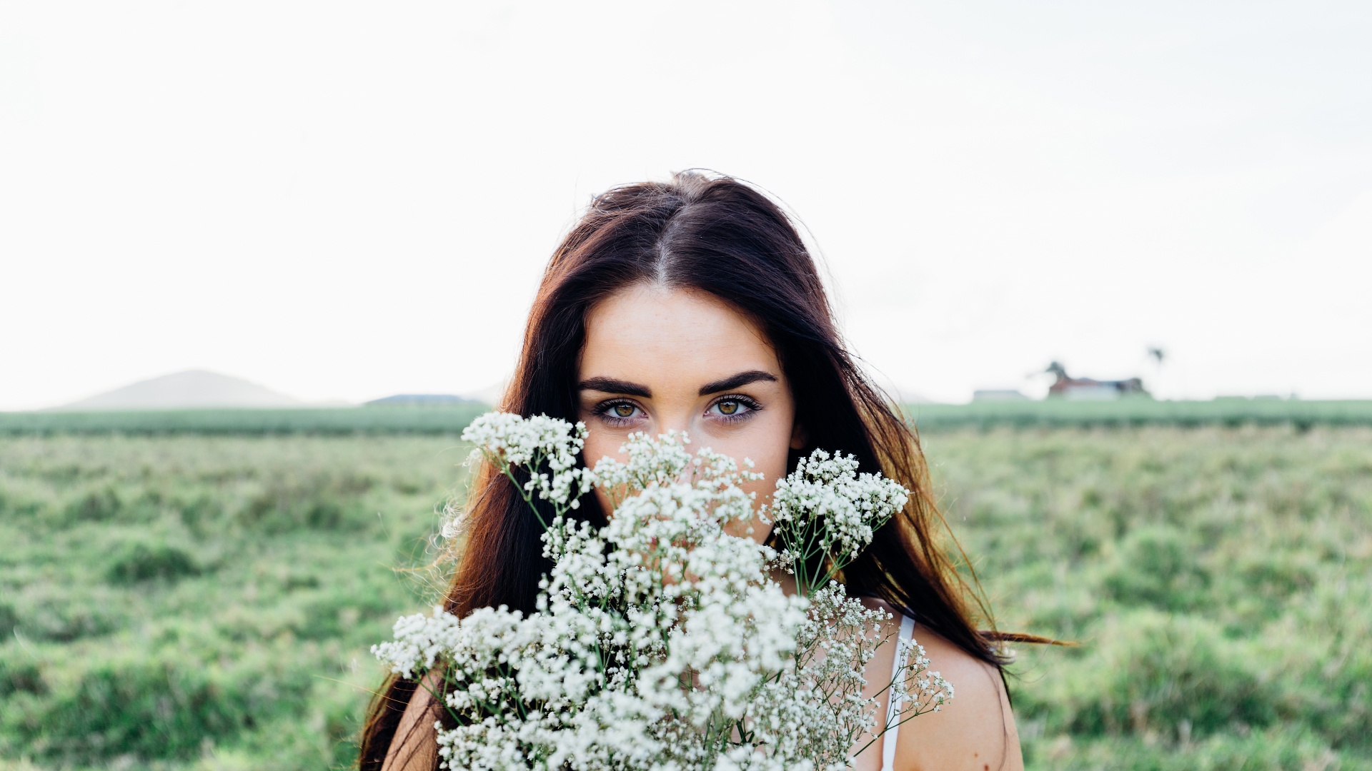 居家小清新闭眼可爱美女2K免费电脑壁纸下载