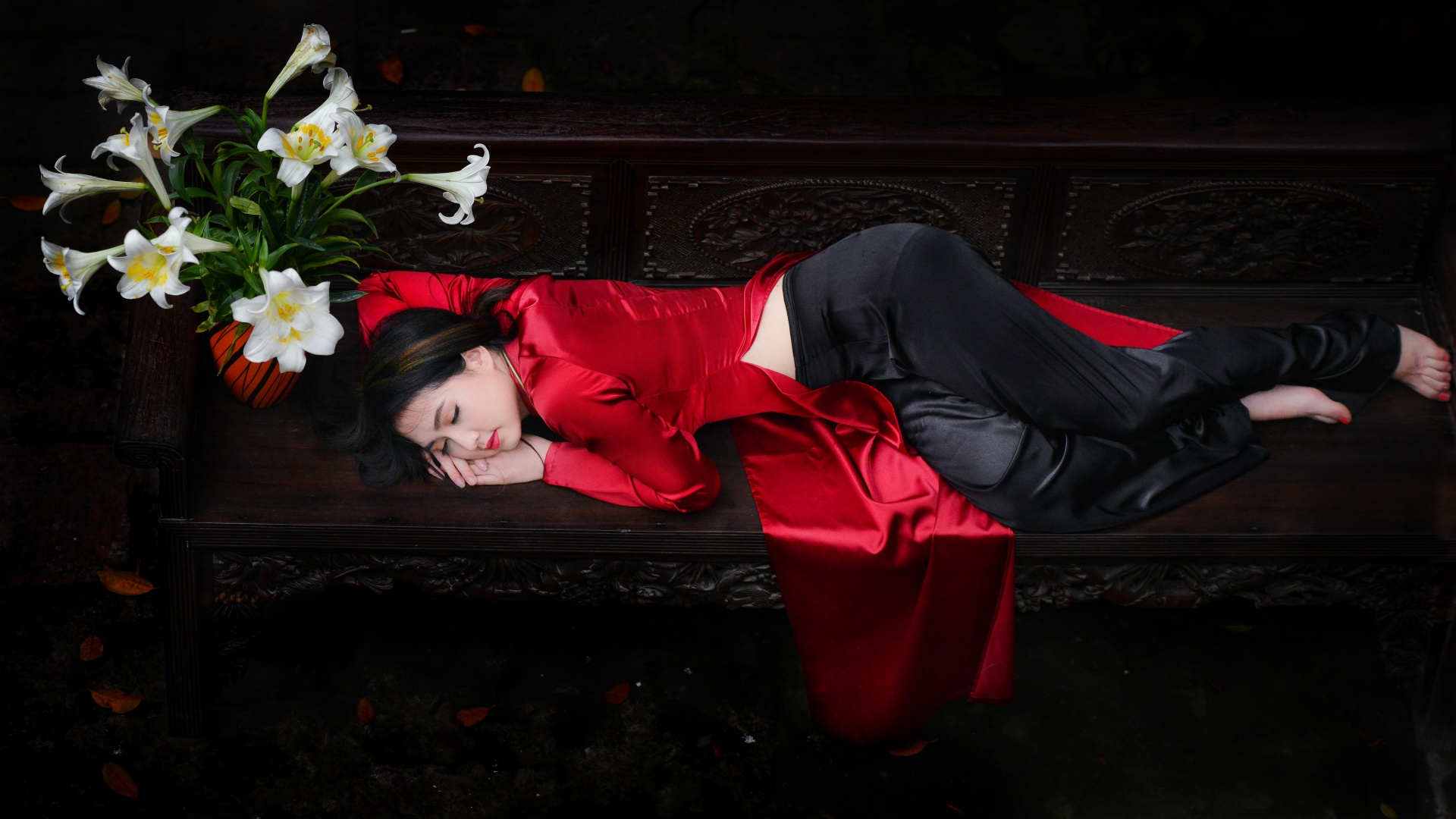 王楚然红色古装裙子灯笼唯美古风美女电脑壁纸免费下载
