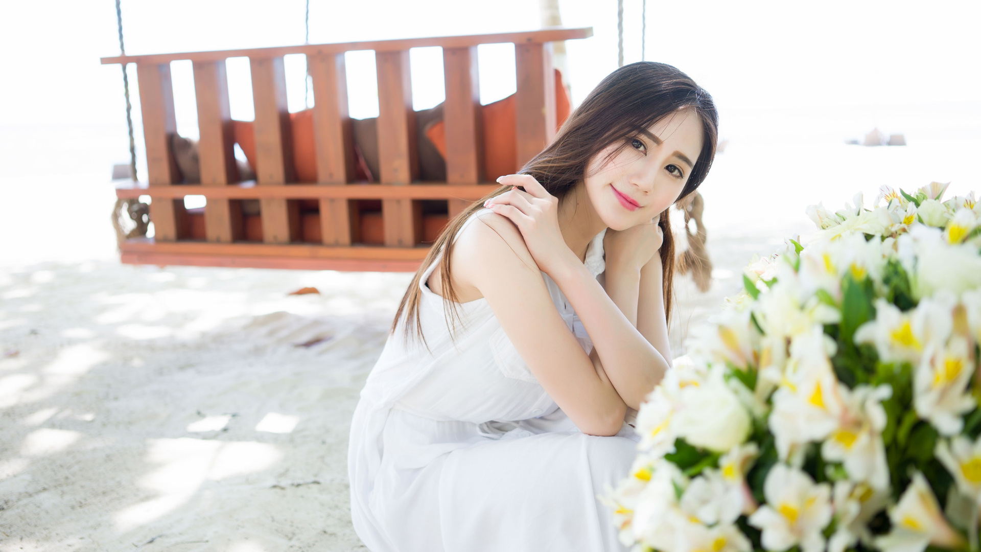 纯白心情微笑美女免费电脑壁纸高清下载
