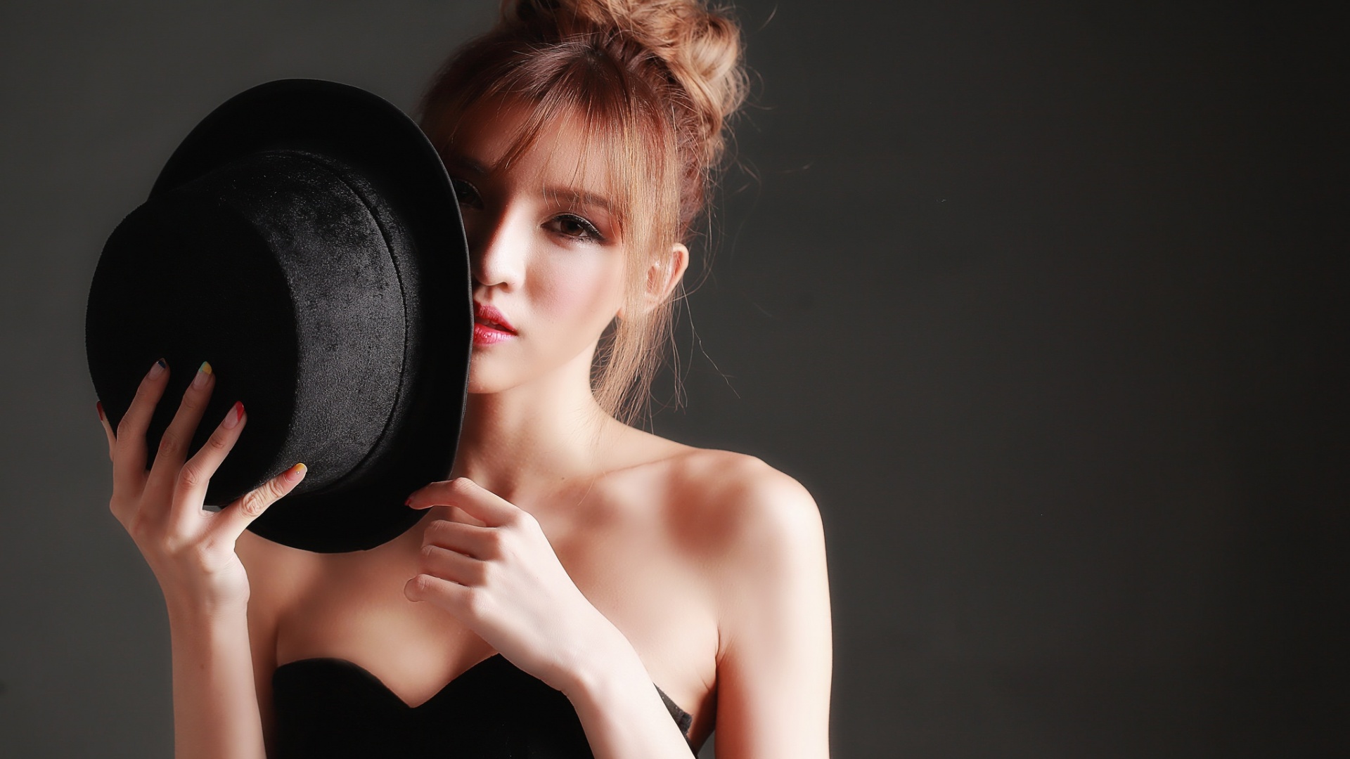 夏装长发黑色短裙美腿美女免费电脑壁纸下载