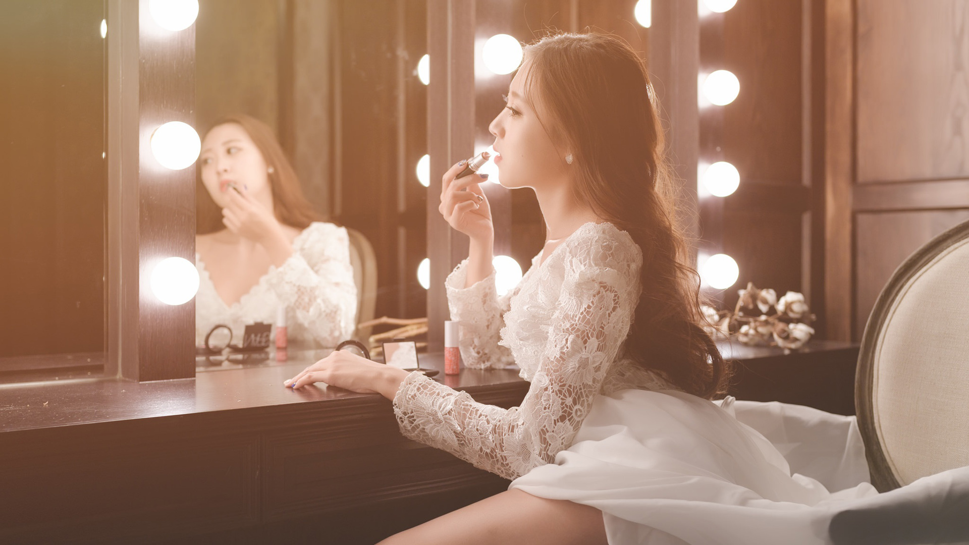 晚上白裙子长发漂亮美女免费电脑壁纸下载