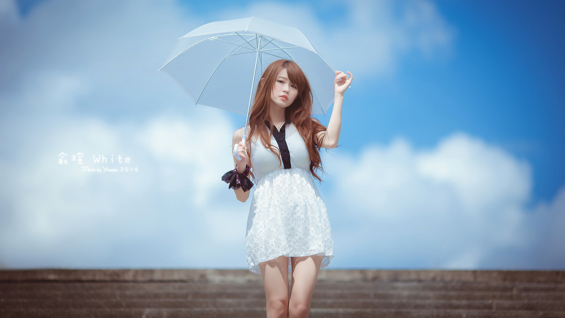 邓雪Sweet卷发白色内衣女神高清免费电脑壁纸下载