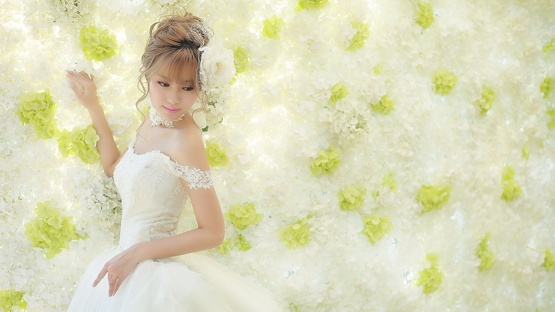 漂亮美女长发花环回眸一笑花海养眼免费电脑壁纸下载