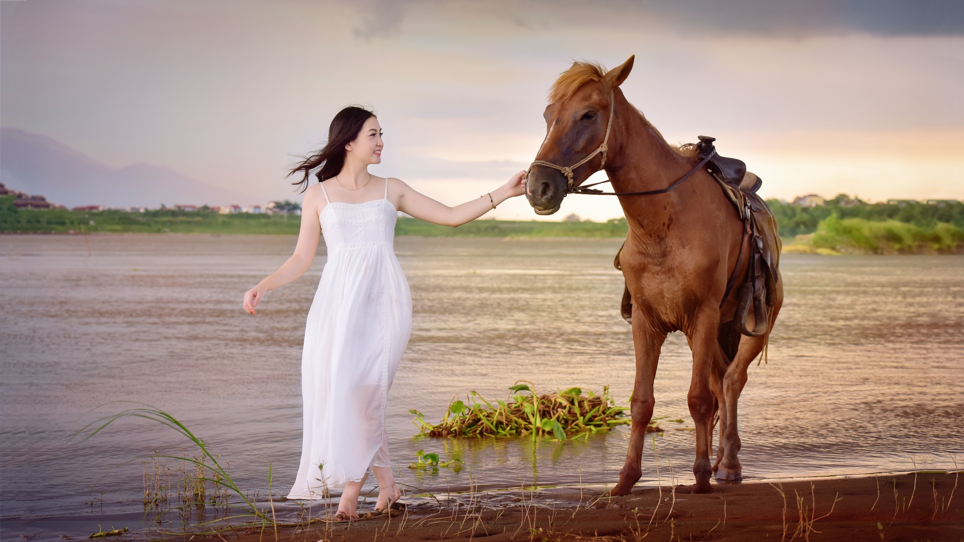 邻家女孩白色婚纱美女 林口桌面壁纸免费电脑下载