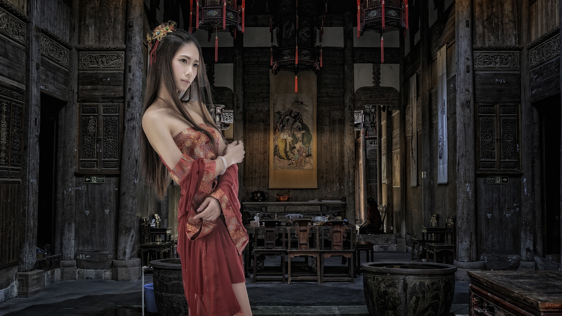 邓恩熙黑色裙子美女免费电脑壁纸下载