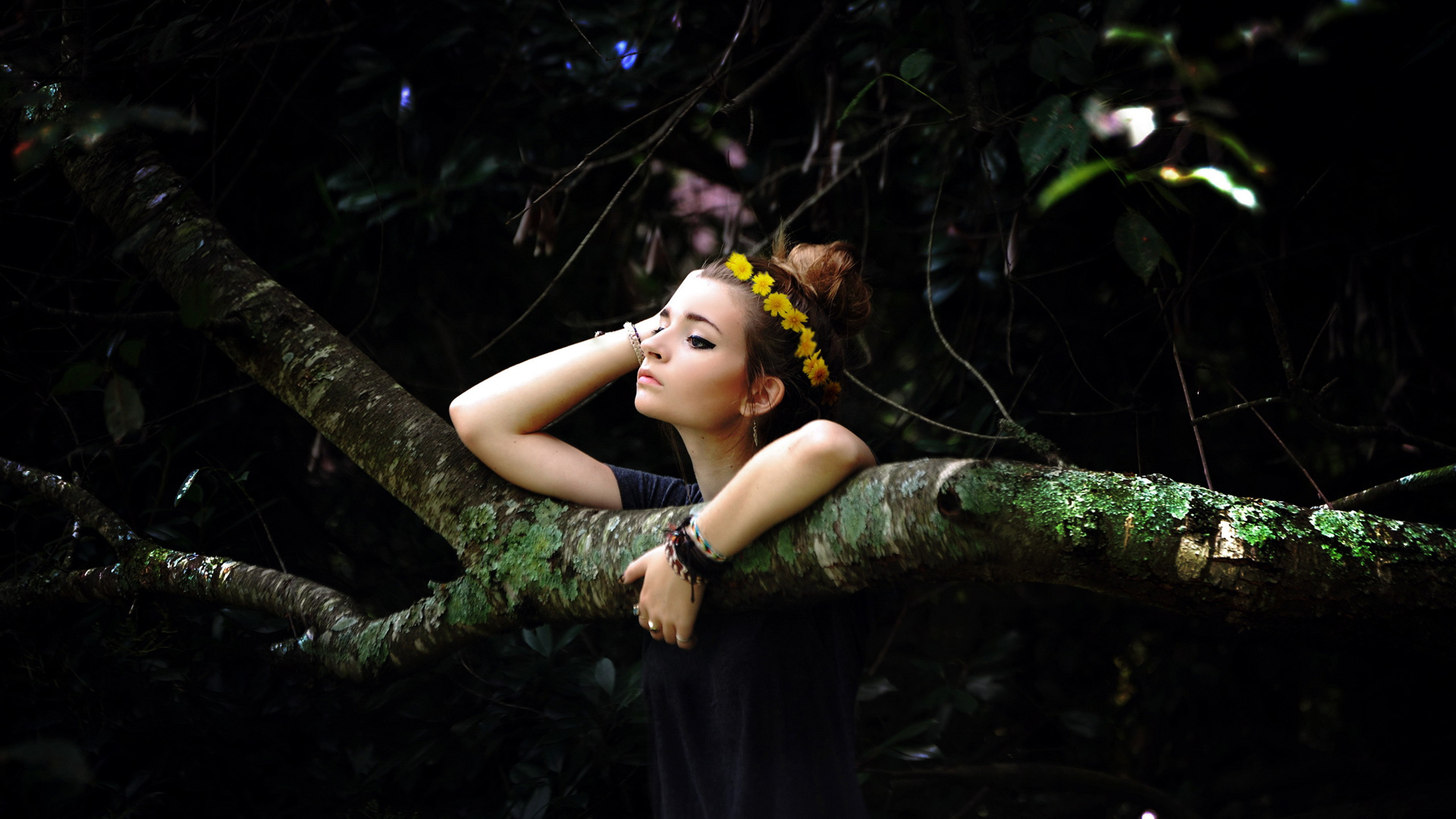 长辫子美女丛林姗步高清免费电脑壁纸下载