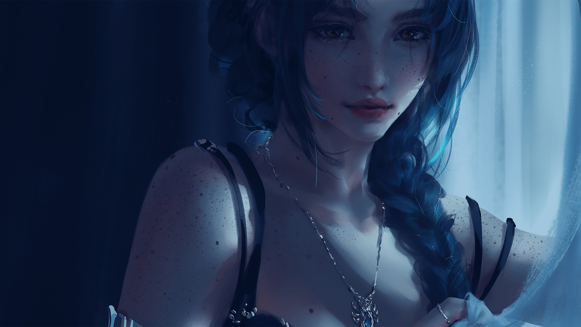 美女长辫子大眼唯美厚涂画风高清动漫电脑壁纸免费下载