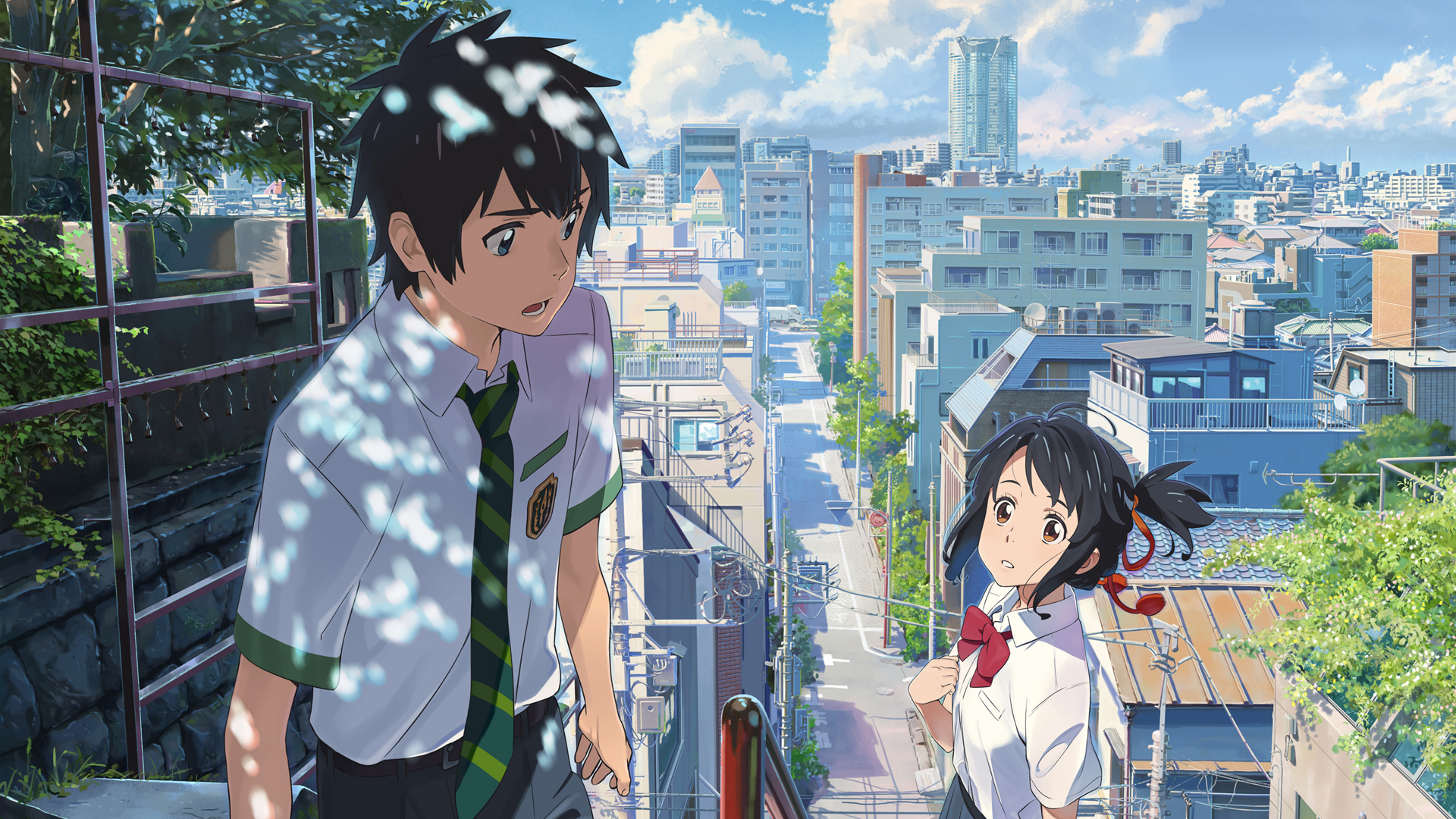 动漫校园姐妹亲吻马路主题免费电脑桌面壁纸下载