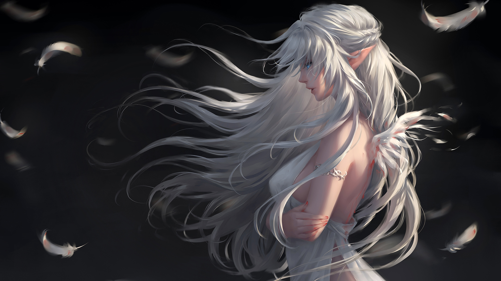 唯美白衣天使羽毛动漫壁纸 免费电脑壁纸下载