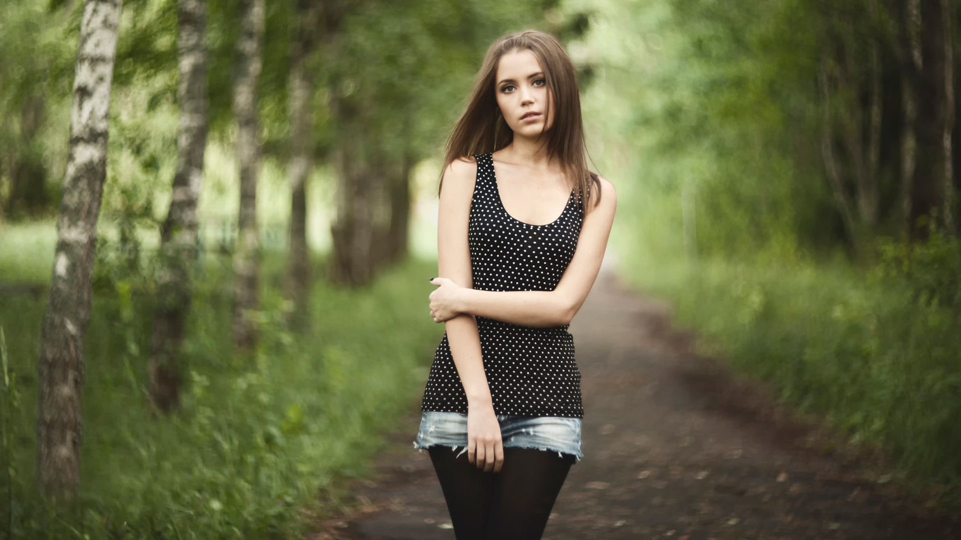 树林风景美女心情免费电脑桌面壁纸下载
