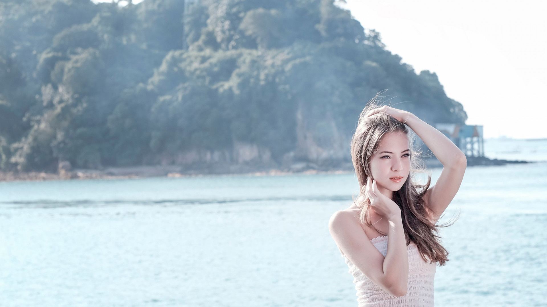 头发遮面美女高清免费电脑壁纸下载
