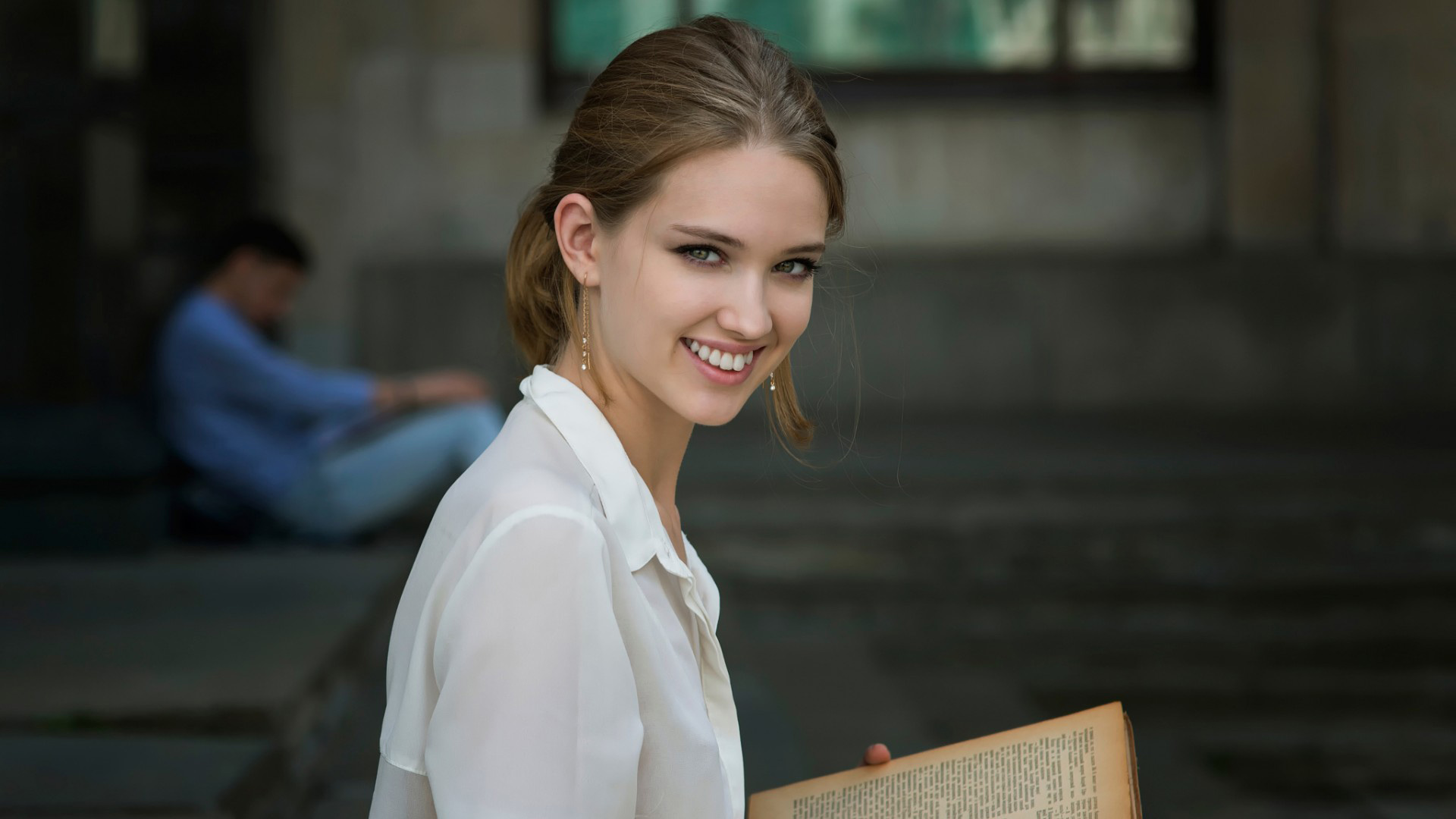 可爱微笑礼仪手势大学生美女高清免费电脑壁纸下载