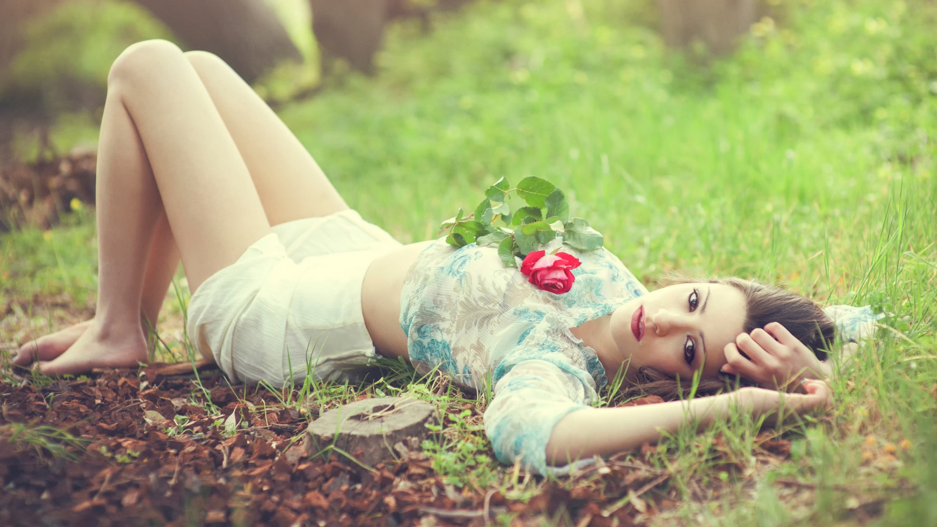 小仙女床畔鲜花环绕唯美写真摄影美女免费电脑壁纸下载