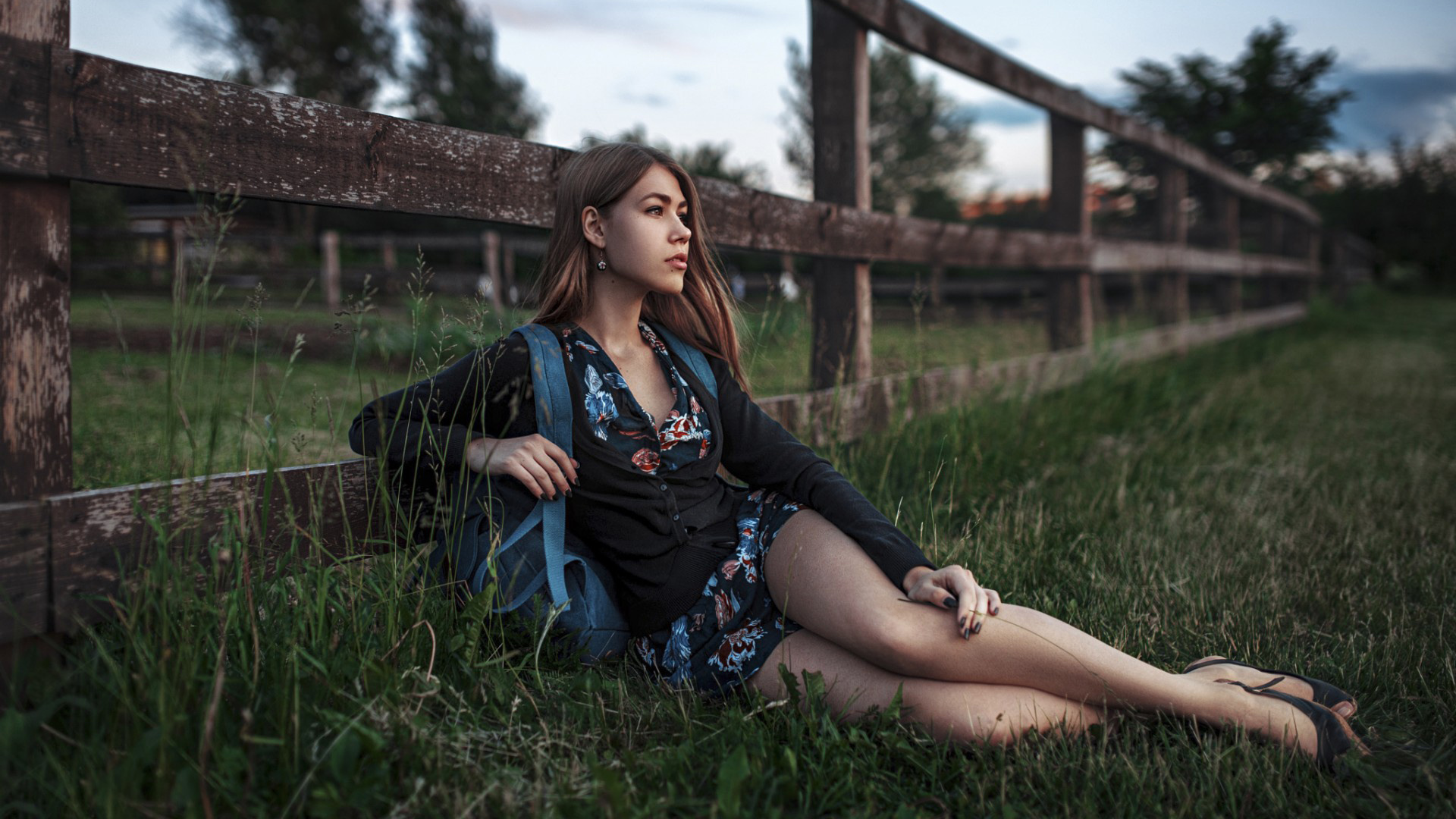 夏天围栏旁牛仔短裤性感美女免费电脑壁纸下载