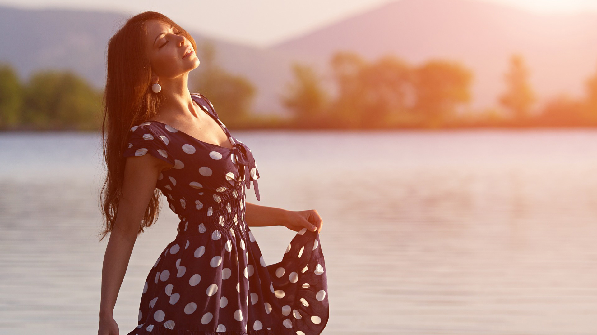 女孩美女与河流蝴蝶风景电脑壁纸免费下载