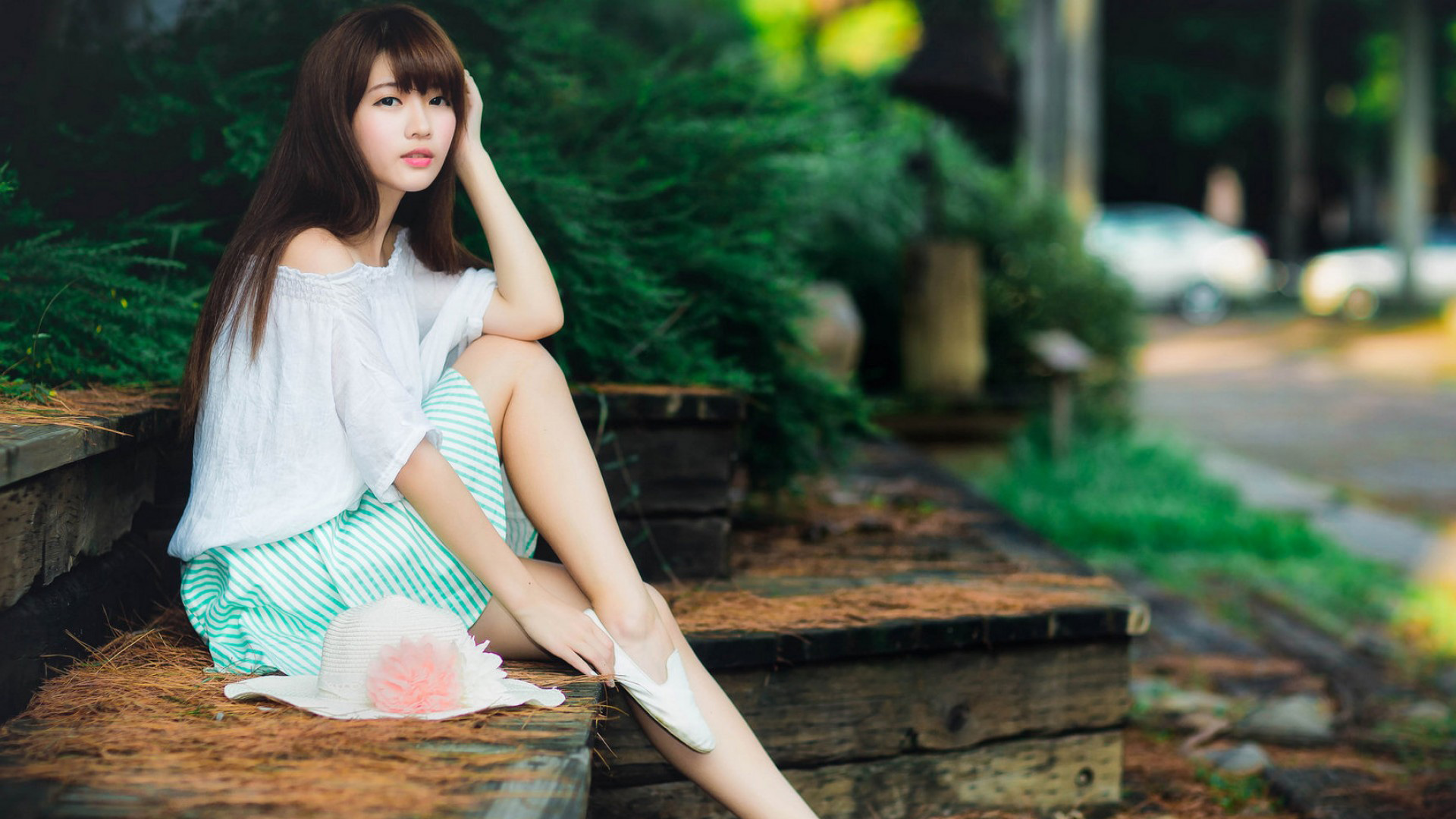 可爱甜美花园美女裙子美腿免费电脑壁纸下载