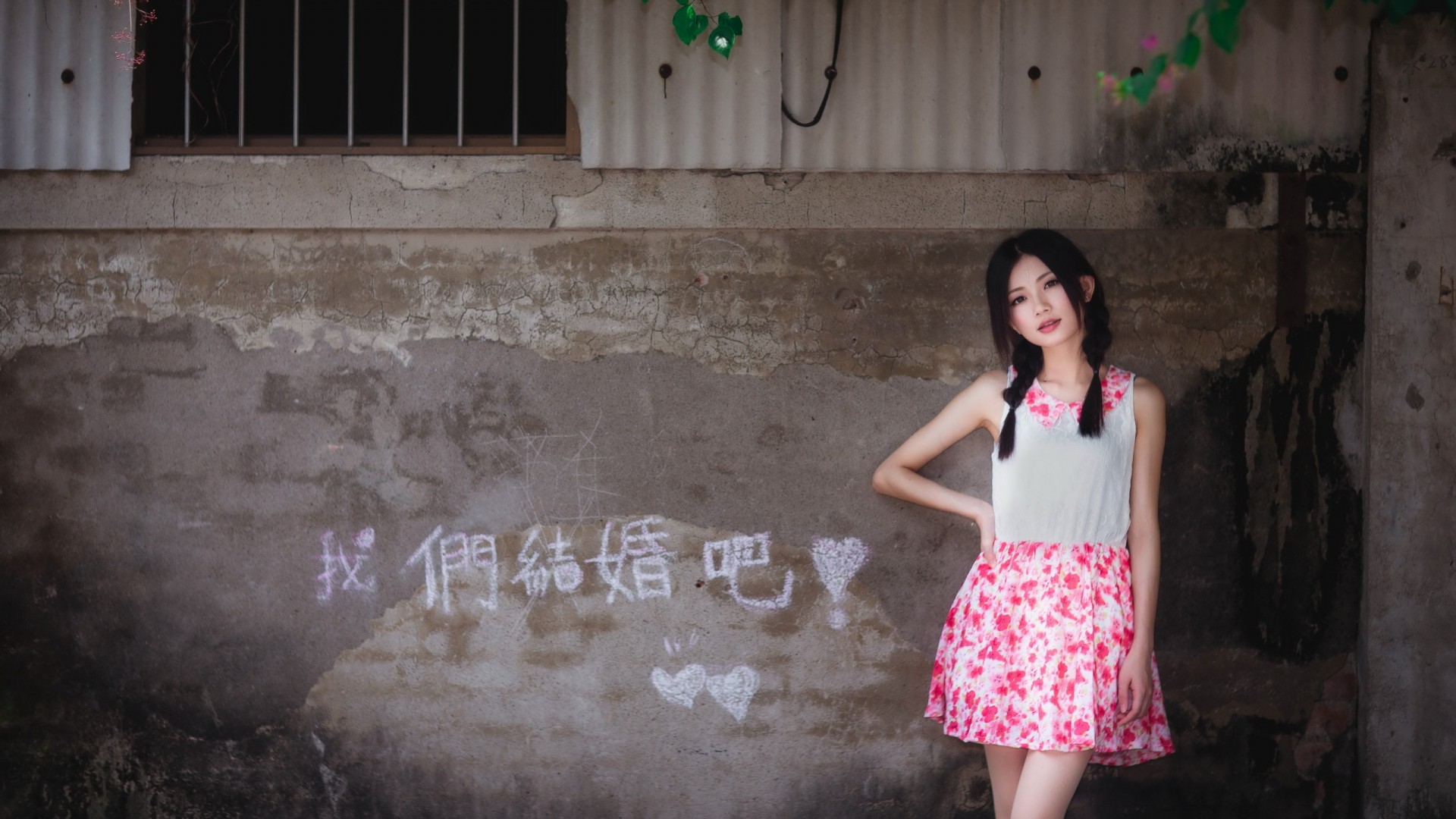 台湾美女腿模Dora白色职业装包臀裙修长美腿电脑壁纸免费下载