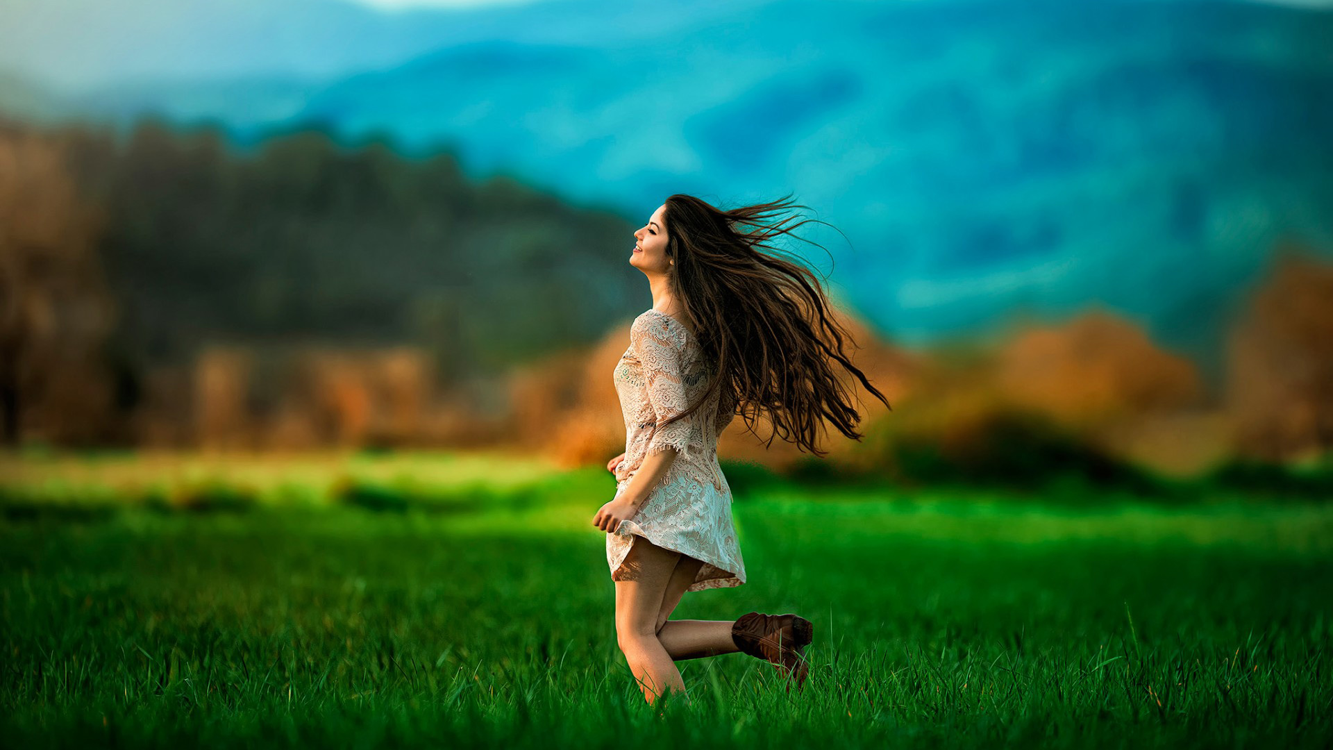 绿色草地清新风 美女野餐布主题免费电脑壁纸下载
