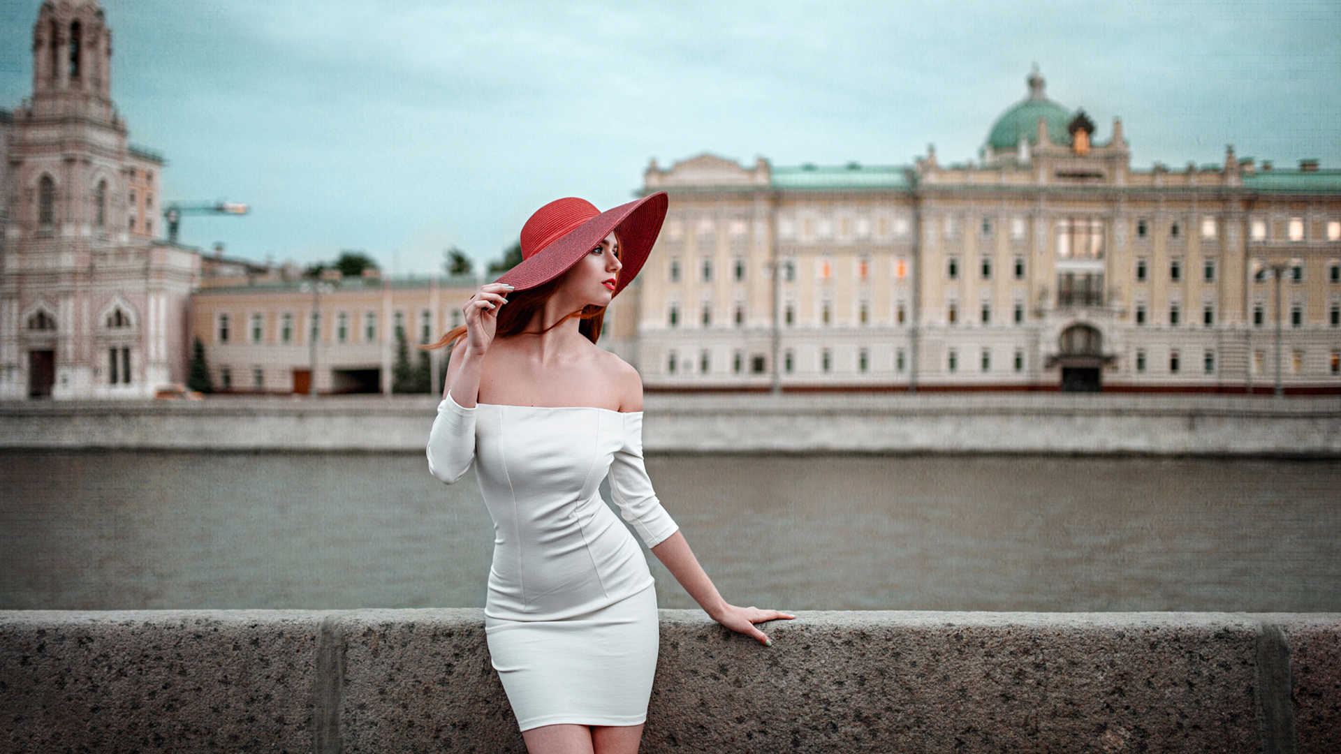 长发美女白色睡衣美腿落地窗私房写真电脑壁纸免费下载