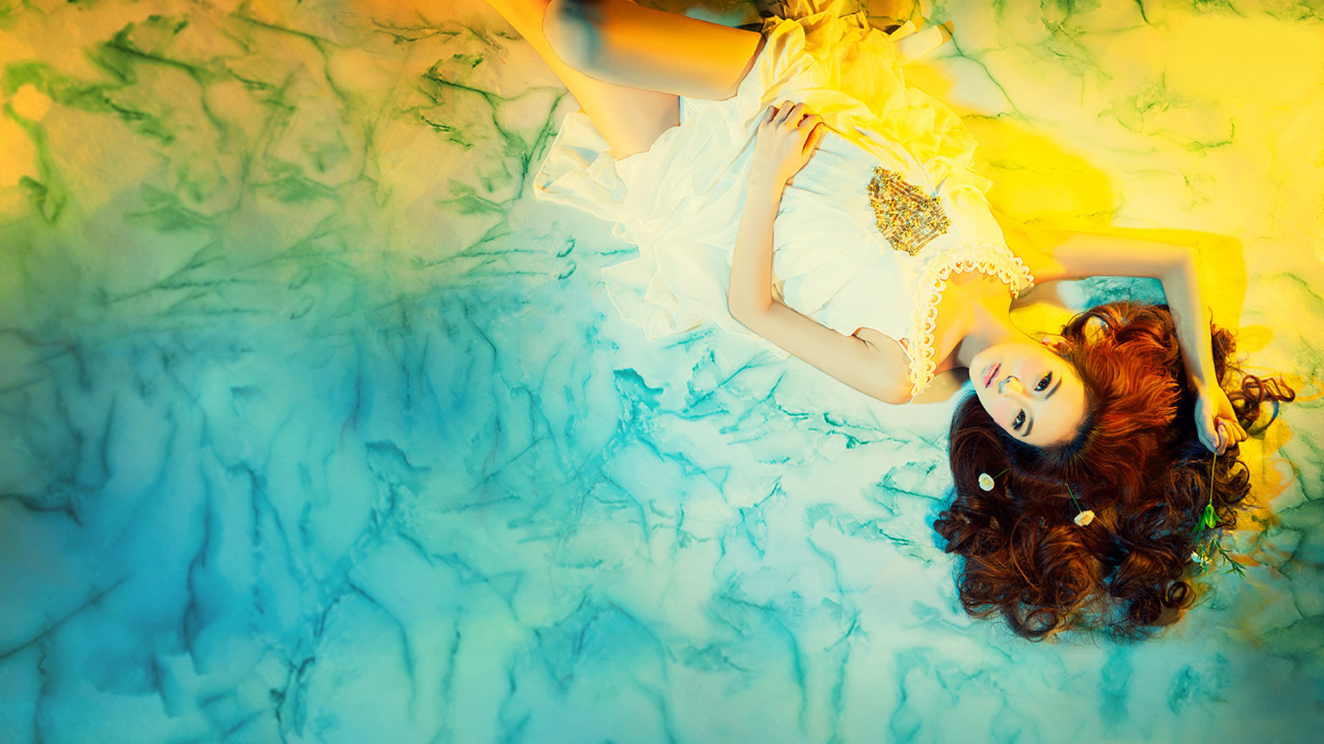 弹吉他小清新长发清纯美女免费电脑壁纸下载