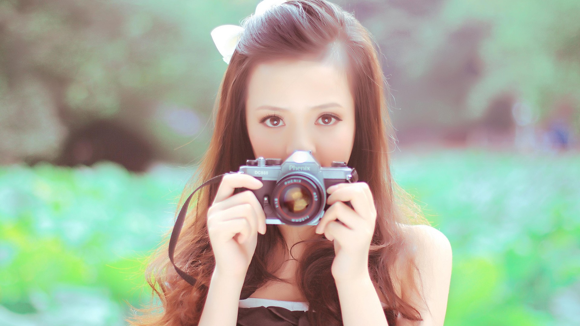 可爱白衣斗笠女孩自拍电脑壁纸免费下载