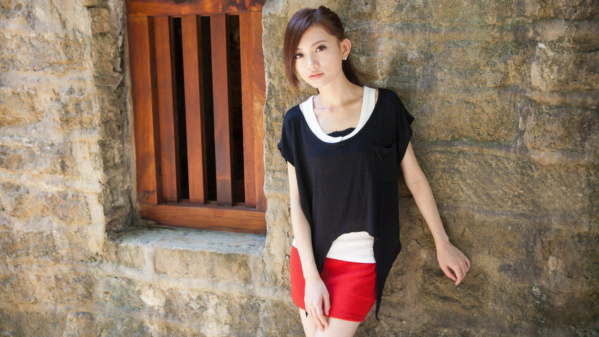 红色裙子热依扎美女高清免费电脑壁纸下载