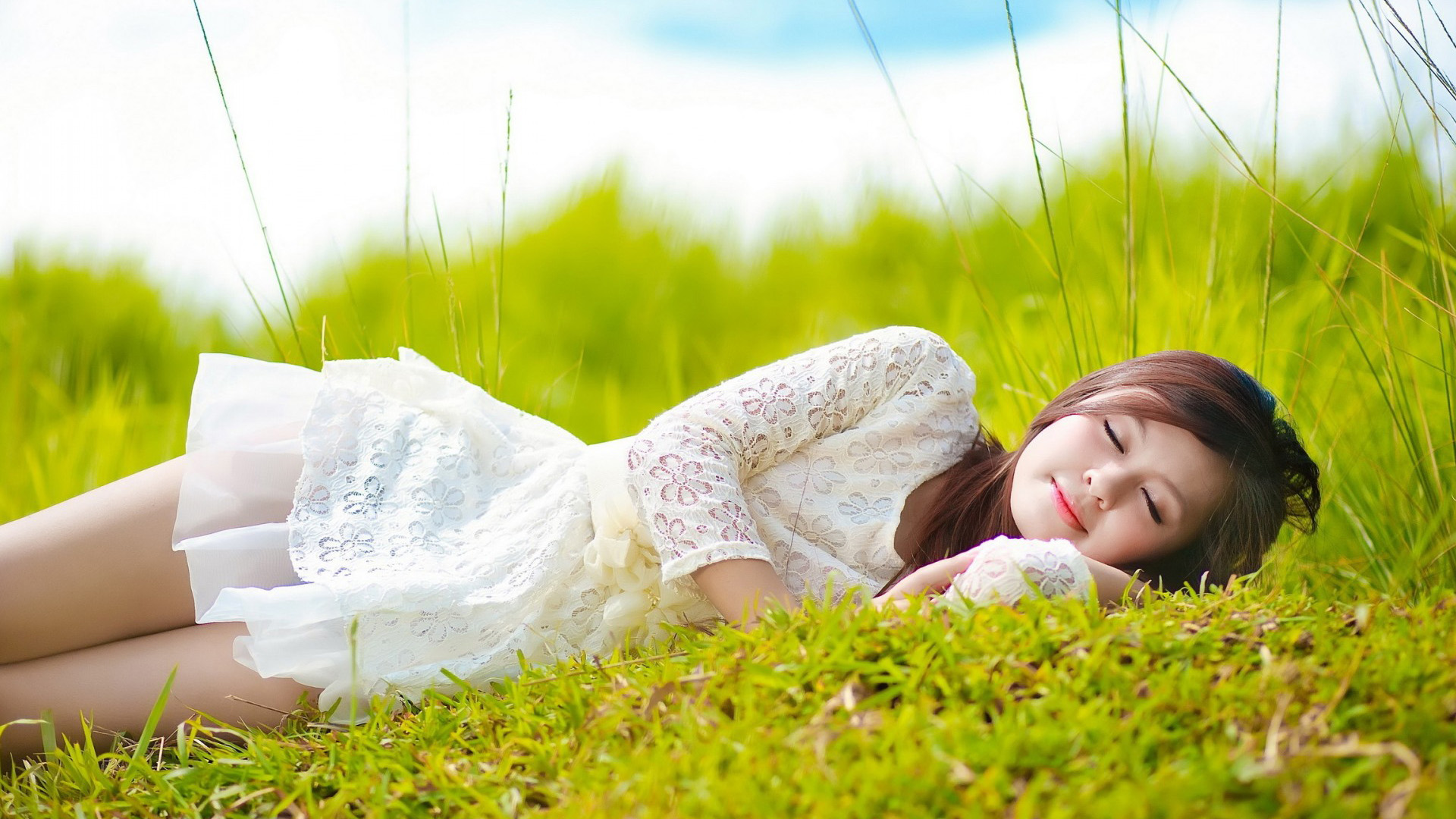 少女时代美女组合白色裙子野外踏青自然风景电脑壁纸免费下载